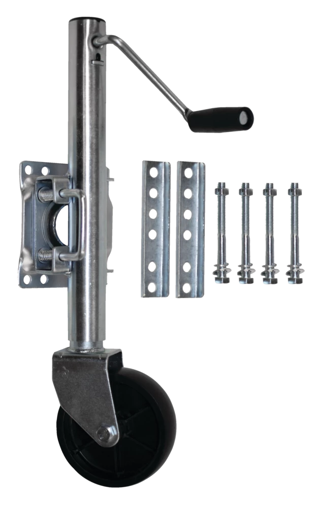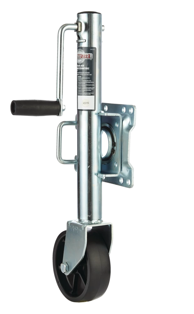 - Motomaster Swing Away Trailer Jack with Wheel features a quick and easy bolt-on installation